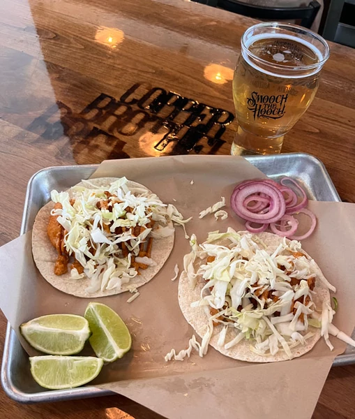 2 tacos. pulled pork. coleslaw. brewhouse bbq. Choice of side.