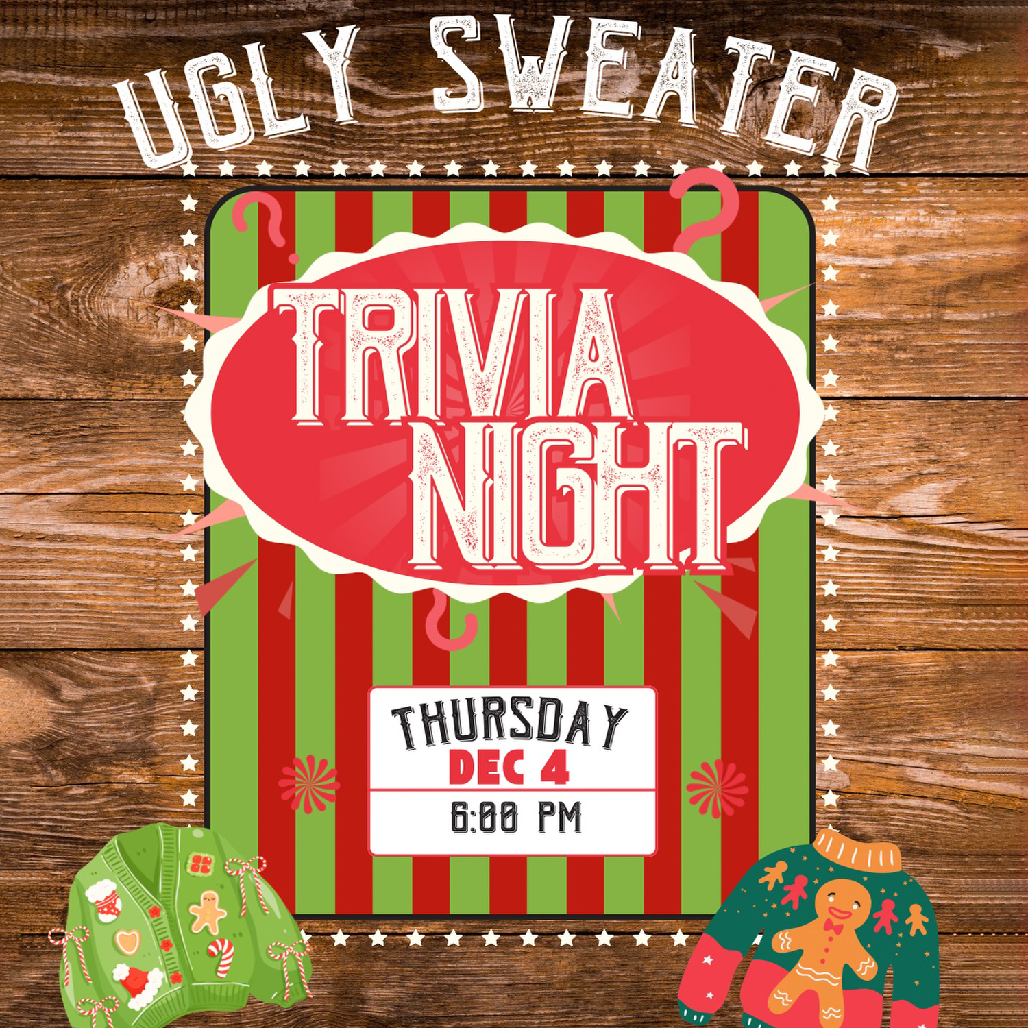 🎄 Annual Ugly Sweater Holiday Trivia – Thursday, December 4, 2025 | 6:00 PM